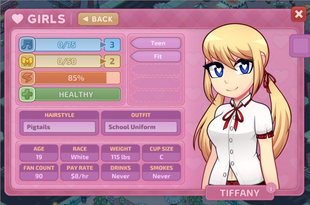 So in my first try I played with the tutorial on, and got way to greedy way to early. As early as day 5 I had four girls, one costing me $32/hour (HOUR?!), and that let to a spiral of me trying to keep up with the daily payments to the girls. As you can probably tell, I was unsuccessful, and the game shoved it in my face by telling me they made it basically impossible to lose.